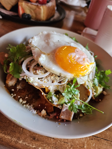 Looked like a must go to place. The order was taken quickly in this cute quaint little cafe in anticipation seeing the other peoples orders we were very excited. 2 lattes, a water, chilaquiles and french toast were ordered as the previous reviews had said they were the best. However the service overshadowed the atmosphere slightly, it took around 20 minutes just to get our lattes and a further 15 minutes to get our food, the waitress had her back to the restaurant the entire time, did not come to check up on us while we were eating, we had finished our coffess while waiting for the food so had ordered another 3 but we were almost complete with our food and then the waitress did not remove the empty cups while giving us fresh ones. The coffees were ok, but the french toast absolutely amazing the taste with the cinnamon and the honey, the red fruits and decoration amazing. The chilaquiles were fantastic! Not your classic chilaquiles, the sauce had a intriguing flavour that made me keep eating even though I was full. If you dont mind the service and the wait time then you are in for an absolute treat...
