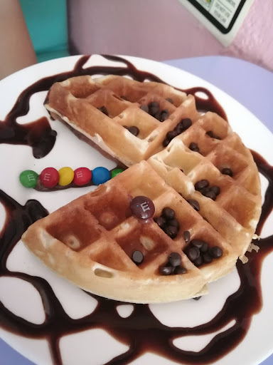 Read moreMe gustó la presentación de los waffles, en el choco Milk le agregaría preguntarle al cliente si lo quiere dulce para mi gusto poco simple y lo esperaba más helado. La primera impresión fue buena, pero cuando pedimos las segundas bebidas nos la dieron para llevar y estábamos comiendo ahi🥺 eso hizo que se perdiera el detalle de la crema y la decoración qué una niña esperaba en su malteada. Le cambiaría en servicio qué te tomarán la orden en la mesa sobre todo si vas con niños, aquí les falla un poco la atención es un poco nula, incluso me tuve que levantar a buscar mis bebidas qué fueron puestas en mostrador. Me quede con ganas de más de lo que se promociona en redes. Buen ambiente para ir con los peques porque les ponen sus pelis, le añadiría una rampa para adultos mayores a la entrada. En general un 8 🤭 si me gusta pero necesitan pulir la calidad en...