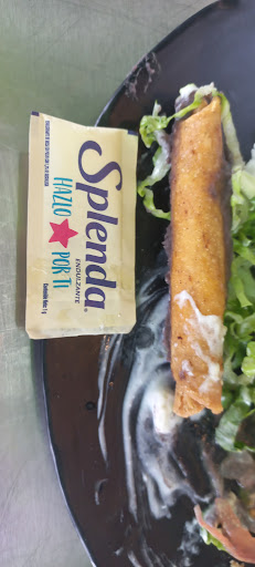 Que robo!!!! Esta es mi segunda vez en el lugar, la primera solo consumí jugos porque les quedaban 20min para cerrar y el cocinero mal encarado dijo "Nah, solo para llevar", que bueno que no atiende. La chica de caja amable. Esta segunda vez pedí unos TACOS DORADOS DE POLLO, jaaaaa, hechos con tortilla taquera, parecían canapés, mi dedo indice está el doble de grande que estos mini rídiculos taquititititos dorados, "ques'que" de pollo, tenía un relleno todo pastoso como una mezcla de soya molida, horrorosos pues y nada más $125 pesos jaaaa. Ni la burla. Y pregunté si así eran o qué? Y sí, así son los tacos dorados. Digo, si el precio fuese de unos 50 pesos, pues ni me quejo, pero es un robo descarado, ni pollo, ni tacos. Ahí ĺes dejo las fotos, casi del tamaño de un sobre...