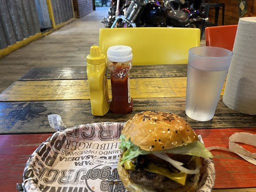 Texana burger $159 pesos but do not include fries!. So I know I was dealing with comedians ready to shortchange all along the way and each step. It is the first burger joint I go, where the fries are not included!! and the option and price of the missing fries is not mentioned in the menu. it is another $60 the server told me; and still we need to see how many they put. They could not even bother to put the option of the price of fries in the Menu. So they can charge you and give you what they want. The burger claims to have 2 varieties of cheese but had only one square cheapo cheese and the other was missing in actions, they shortchange here, then they shortchange in the champignons none even though the Texana claim to have champignons. Onion rings is in the plural but only had one, shortchanged there and I guess in the tomato too. It claim 140g but is one burger and another small one of different meat. one small slice of tomato and lettuce. then the bread break and obviously they do not provide a fork or toothpick, is a bare bone operation to maximize the extraction of money. Once the bread melts; you have to eat and pick the pieces with your finges. I came with shorts and started getting eating alive by the mosquitos, so I recommend you to came with pants, so I eat it quickly and left to never...