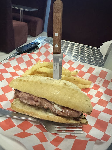 Read moreLoved this place...the man that runs it cooks food to order and seemingly with love. Unfortunately the texture of the meat was off...while my burger was huge and yummy I found it hard to finish. I very much enjoyed the churipan (sausage roll) This was full of flavor and cheaper menu item. I was also annoyed that I was charged 75 pesos for a small bottle of the cheapest water. This would normally sell for 20 pesos tops at a convenience store. Even in fancy restaurants only 55 pesos. When I questioned the chief about this he simply came back with bill showing the same price in dollars. Bring your own...