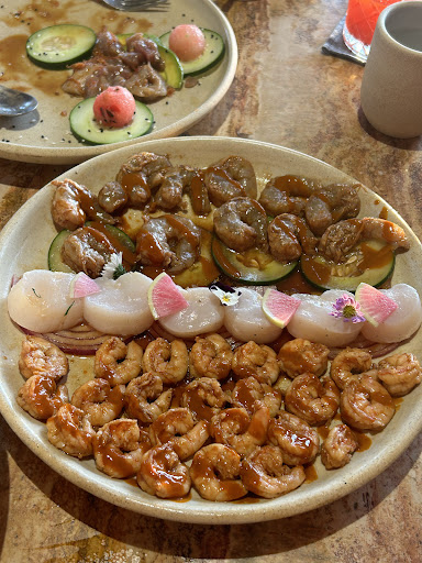 The bad - I’ve had a few ceviches in my time and this was not good. The shrimp was gray and translucent. They did not let it cure long enough. I sent it back. I couldn’t eat it. The coconut shrimp was over cooked and was tough and rubbery. The surf and turf taco was a bit grizzly. The AC ducting is the ceiling sweats and as a result drips onto the table. Unpleasant. The place was not busy so we had about 4 very enthusiastic waiters around our table, and they sort of loitered. It was quite off putting and took away from the experience. In addition we got the hard up-sale pitch, with suggestions on what we should eat.