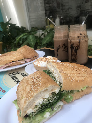 By the way we took our unfinished food to go and after 2 mins talking about it outside we just threw it out. We spent a pretty penny on this. One latte, rosca, expresso and two bagel sandwiches 20 USD (no tip obviously) We hate throwing out food but this was a no brainer. Place is Basura with a billboard...