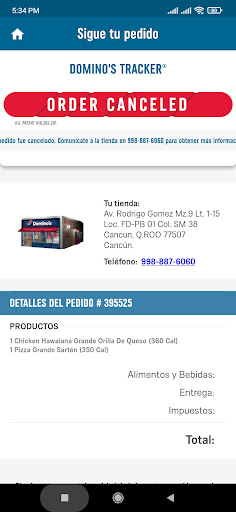 Ya había pedido como en 3 ocasiones anteriormente y sin problemas me habían traído mis pedidos pero hoy hice un pedido para disfrutar con mi familia y me marcan para decirme que lo iban a cancelar porque según ellos no llegan hasta mi domicilio y le dije que no es la primera vez que pido y siempre me asignan la misma sucursal ella necia de que no y que me lo iba a cancelar porque no llegan hasta domicilio y le dije que le podía enviar capturas de pantalla de mis pedidos anteriores y me dijo molesta que me lo van a cancelar y me colgó sin más, pésimo trato el que...