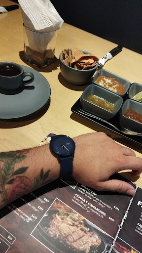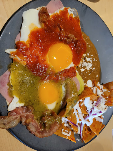 Read moreEstá es la cuarta vez que acudo a este establecimiento la primera vez fue en horario de comida ordenamos hamburguesas mi amigo y yo el recibimiento muy cortés los meseros en seguida comienzan a montar la mesa con salsas, frijoles y totopos, él no se terminó su hamburguesa ya que la que ordenó es la mas grande yo por mi cuenta si lo hice, la verdad muy recomendable las hamburguesas y llenadoras; en la segunda ocasión ordenamos algo pequeño para compartir no recuerdo el nombre del platillo pero traía dos mini hamburguesas, alitas y boneles si mal no recuerdo, la tercera ocasión es más reciente llegamos a desayunar otro amigo y yo, el ordenó unos chilaquiles rojos con huevos fritos, yo ordené unos huevos divorciados (dejó las imágenes abajo) aquí en el área u horario de desayunos te ofrecen café americano y enseguida te traen rebanadas de pan con mantequilla, mermelada de fresa y miel maple en esta visita hubo un detalle ya que mi amigo preguntó por el agua del día (es refill) que si tenía a lo que la mesera comentó que preguntaría, después de un momento regreso y nos dijo los sabores disponibles entonces le ordenamos un vaso de cada sabor, se retira para regresar en seguida y comentarnos que aún no estaban disponibles hasta el horario de comida ya que en el sistema no estaban activadas a lo que mi amigo le comentó que si podía llamar a su gerente en turno a lo que la mesera enseguida lo llamó, llego el chico se le explicó el motivo y enseguida nos dio una solución al problema minutos más tarde nos llevaron nuestros vasos de agua, en la última visita fuimos varios amigos a desayunar dos de ellos ordenaron chilaquiles con huevos, otro unas enmoladas y yo un omelet de pollo, con champiñones, pimiento morrón y queso amarillo lo único que mi plato tenía muy poquitos frijoles (se puede observar en la imagen) algo que nos percatamos en esta visita es que el cafe americano va por cuenta de la casa.