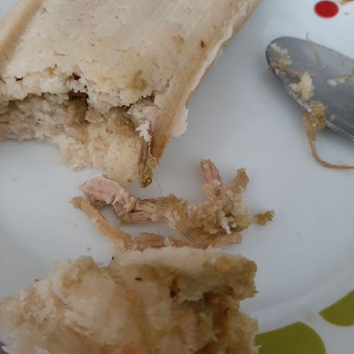 Read moreTerrible, encontré un cabello enredado en el tamal y al mandarles la evidencia me dijeron que puede ser los pelitos qué trae la hoja. Era la segunda vez que compraba y definitivamente jamas lo haré de nuevo, claramente ese era un cabello y estaba enredado...