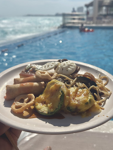 However since it’s buffet style, the sushi rolls come with plenty of rice and very little filling. The stir fry dishes have some unique combinations like plantain supplement in eel sauce. Hence don’t expect to be blown away, and frankly we preferred the BBQ stand by the pool. Opened noon...