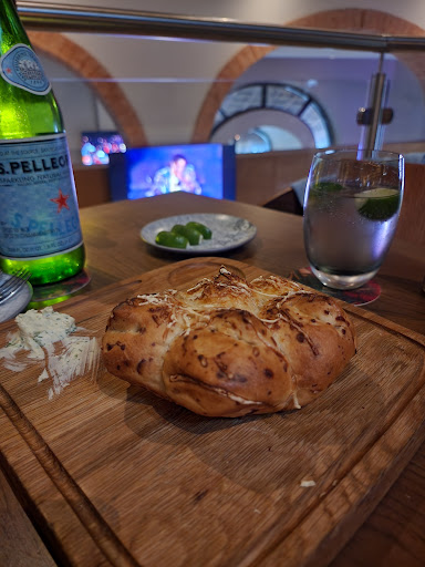 The bread was served warm with asiago cheese crusted on top, I can't remember exactly what the butter was but I think it had garlic and chives in it. (I'm not a bread person but I did take a bite).