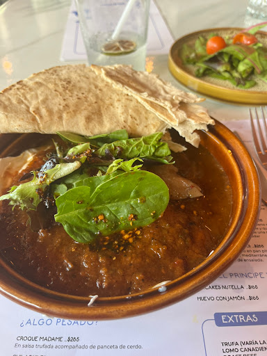 Read moreEl restaurante esta muy amplio con salon comedor al aire libre (afuera) y en la parte de adentro con aire acondicionado. Nos toco en la parte de afuera porque íbamos con nuestro perro. El restaurante estaba vacio, solamente una familia de cuatro en una mesa y la de nosotros una nesa de dos personas.