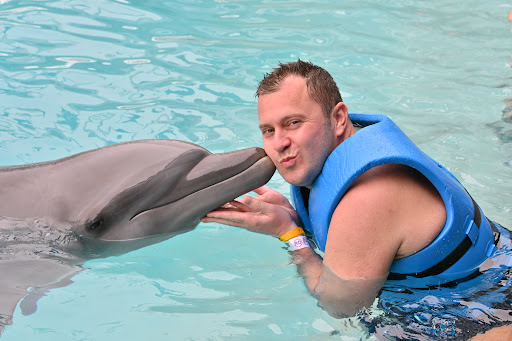 We where then given fresh towels and a locker and invited to put a life jacket on. From there we then broke into groups of ten and shown into the water. Our trainer was good, and from there the Dolphin 🐬 swam round us, did tricks and we got to touch and feel it. The whole 30 minutes was very good and the camera man is constantly taking pictures. It's a very good magical experience and my daughter loved every minute of it, as did I.