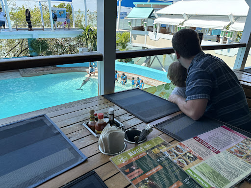 For the portion size it’s probably a little bit more expensive than going somewhere else, but they make up for it with having the dolphin show next-door and being able to see some of...