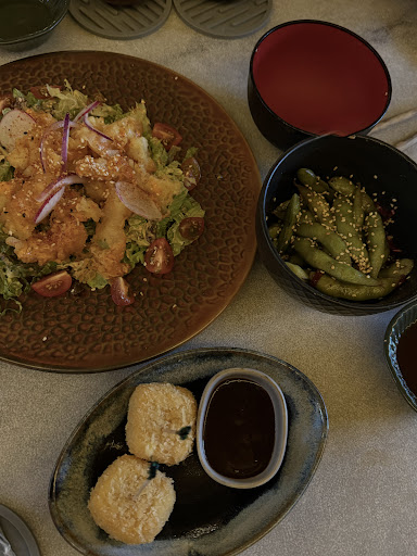 Pretentious, expensive and so-so taste... This place was incredibly disappointing. The portion sizes are ridiculously small, the cheese kushiages are so overheated that when they arrive almost all the cheese has oozed outside and is stuck in your plate instead of being inside. The bread is too thick and the taste is not really good.