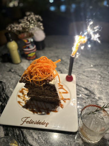 Our recent visit to La Madalena in Cancun was nothing short of extraordinary. From the moment we walked in, we were immersed in an unforgettable atmosphere. We were immediately captivated by the stunning atmosphere. The ambient lighting and led ceiling created a visual experience we've never had anyway before. The service at La Madalena was off the charts. Our 5-6 servers were uber attentive, knowledgeable, and genuinely passionate about ensuring we had a fantastic dining experience. Every detail was meticulously attended to and nothing was overlooked. The food was simply incredible. Each dish was a masterpiece, bursting with flavor and beautifully presented. We started with a "small" Caesar salad that feed our table of four, followed by appy pork tacos and popcorn shimp. Our mains were the cheaper filet steaks and the salmon garlic chili. Steaks were cooked perfectly and sliced at the table. The carrot cake dessert was the perfect end to a stellar meal and fed all four of us. Drinks are also fantastic with our own private mixologist standing by. Price was moderate, but quality and service was exceptional. In our opinion La Madalena is a must-visit for anyone in the Cancun hotel zone looking for an exceptional dining experience. The combination of stunning atmosphere, impeccable service, and delectable food makes it a standout restaurant. Looking forward to...