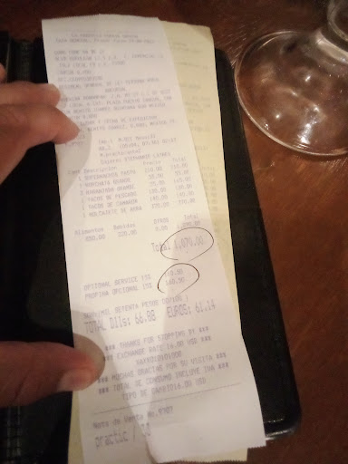 The food is very simple and overpriced. We paid in dollars in a very bad exchange rate. They accepted it and we left. When we were almost leaving the mall, the waiter got to us and said that he could not accept the bills we gave him because they were old. We gave him other bills, but he did not gave back the money we had given first and said he would come back with change (we didnt think he would rob us). He came back with very few pesos and said they accepted the bills this time. It was our first day in Mexico and we didnt know the exchange rate, so we thought it was right. We ended up being robbed right on our faces. We got the impression that everyone in mexico is trying...