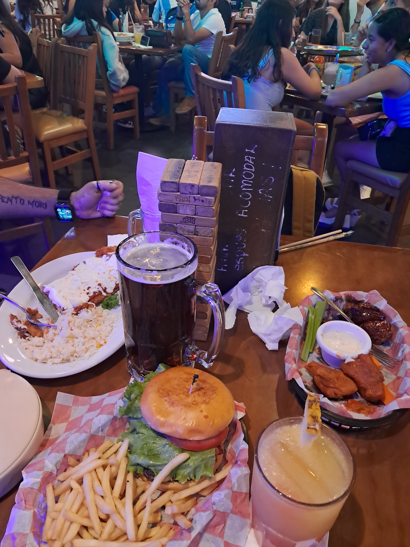 Read moreHoy fui a comer a la taberna y la verdad el servicio estuvo pésimo Primero nos atendió un señor que no se presentó, nos tomó la orden de bebidas, ya después la de alimentos ya que mi acompañante y yo aún no estábamos listo, la comida demoro, la verdad tenía un buen sabor pero yo pedí un coktel divorciado y el Mesero estaba ocupado con otra mesa que había llegado, se lo pedí a otro Mesero que me trajo mis alimentos y yo vi que el se lo dijo a mi mesero, pasaron casi 20 minutos y ya me había atorado con mi comida le hable a una chica diciéndole que ya había pedido el trago y nunca me llegó, cuando me trajo mi bebida le pregunté quién era mi mesero y respondió que ella, cuando nunca se presento como tal sólo había tocado mi mesa en una ocacion y eso por que yo le hable Pedí un ron malibu pintado con jugo de piña divorciado y me al mezclar todo nisiquiera se llenaba el vaso, osea entiendo que son medidas exactas pero no esta bien que ya incluyendo el hielo mi trago no llene el vaso, adjuntare La imagen de mi trago. Me tomo el tiempo de escribir esto por que soy mesera, al igual que yo doy un servicio considero que se debería dar el mismo a cada persona. Honestamente no regresaría...