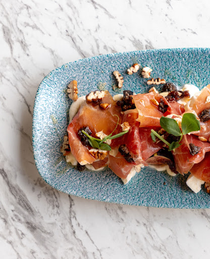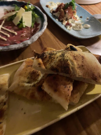 De entrada un carpaccio de carne, ufff delicia total El plato de higos con burrata, prosciuto y trufa es definitivamente un imperdible! Los calamares fritos igual son un must!! Delicia total