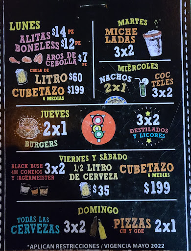 Read moreMy husband and I are both big michelada fans. We found this place on Google because we were on the hunt for a place that would do good micheladas outside of the tourist zone. We figured since this place had good reviews and "micheladas" was literally in the name, surely it must be promising. We were not let down. The micheladas are great here! Prices are very reasonable too. We had other drinks as well such as a Miami vice, a Pina colada, a drink which featured a banana, and a drink that had cucumber in it. All of them were fantastic! All drinks as served in one liter sizes (as you can see in the photos) and everyday they had a different "daily special" (as seen in the photo). There is no happy hour, it's just an all day special for whichever day of the week it is, which is especially nice. During our vacation we came here 3 times and everytime had excellent service! The environment was chill and they had a live band every night that we went, the band tended to come on around 9 or 10pm I believe. They have both outdoor and indoor seating. We...