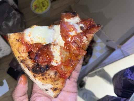 Tiempo: Quede estupefacto por el tiempo en el que hicieron una pizza. Yo llegue un poco antes de que abrieran, y claramente les dije: "regreso en un momento, pero preparen la pizza" yo en mi ingenuidad creí que se tardaría un poco más por ser artesanal...regresé como en 50 minutos y aún no la habían hecho...me sentí un poco frustrado porque ahora se tardarían en crear semejante obra de arte, pero me cerraron la boca, en menos de 10 MINUTOS tenía mi pizza en mi mesa.