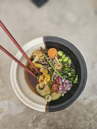 We have a lot of good Asian food in Seattle so my bar is set pretty high for ramen but this was great. The broth was super rich and complex and the veggies were perfectly cooked. The noodles had a great alienate bite to them and they split it into two bowls for my.wife and I to share. The gyoza was also great. It had a nice crunch and even though it was vegiterian it had a nice meaty flavor. I really liked the chili edimame but the regular one was just okay. The chili one was loaded with spicy and savory chunks and there was plenty of it.