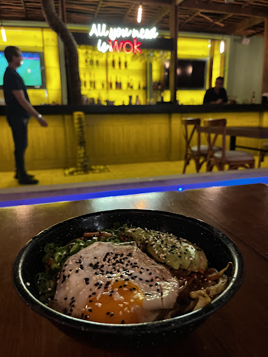 I have to say that we were slightly disappointed eating here given all the excellent reviews. If I were to rate the Green Bao alone I would give it 5 stars for its phenomenal flavor and the delicious sauces. My non-vegetarian boyfriend had both the Shrimp and Tuna bao but only recommends the Tuna (“Shrimp was mediocre.”) His main criticism was that there was too much bread in both Bao. In my opinion the bread-to-filling ratio in the Bao was fine, but as you see in the photos— there was wayyyy too much bread in the Vegan Baoburgesa! The bread overwhelmed the burger, especially since the patty was bland, mushy, and fell apart while I was eating. But choosing to order a burger in a restaurant specializing in woks was my bad. Boyfriend ordered the Woking Rice specifically with “no cilantro”...and was dismayed that when it was finally served, the dish had heaps of cilantro (both on top and cooked within the bowl). This was just an honest mistake, and they did go back and remake his dish —but even after all that, he felt it was “just decent.” I will say that the disappointment we felt with the food may have been due to our choices — as we both regretted not going with the “make your own wok” option. We did love the habañero and other house sauces and while these had promising flavors our dishes just didn’t...