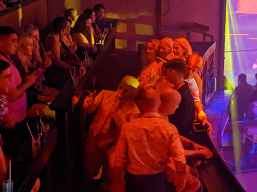 People who were too drunk to know any better were trying to dance on their seats. Down below us we could see the table areas that others have talked about. Thank God we didn't get scammed into trying to "upgrade" apparently as the night goes on it gets so busy down in that area that you can't even sit at the very expensive table you paid for.
