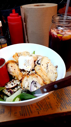 Gallo negro en la alameda, me sorprendí mucho con el cambio de ubicación, están compartiendo lugar con la comida yucateca; y el servicio es excelente 👌 sin duda, hay música en vivo muy tranquila, puedes pedir de ambas cartas, te sirven casi de inmediato excelente 👌, les recomiendo pidsn la jarra de vino de la casa, es muy dulce, excelente para acompañar cualquier platillo y para los que no son fanáticos de los vinos secos y demás ese vino es excelente, aunque creo que deben mejorar en la presentación. Para esta ocasión pedí pizza de jamón y aceitunas excelente sabor, (agradecería que las hubieran fileteado) solo ese fue el detalle, la masa muy crocante y la calidad del jamón serrano increíble así como los quesos de la misma pizza, otra entrada fue una.orden de taquitos de cocinita pibil (excelentes, por cierto), ya que el pibil es 100% yucateco, no emplean el famoso ministerio se agradece, porque el sabor de la hoja de plátano se siente en el paladar así como los condimentos del mismo sin ser ácido al cual estamos acostumbrados (del famoso pastor) y no, realmente comida exquisita, también pedí un tamal de cocinita (ahí si la consistencia de la masa) no me agradó tanto, si bien en la zona bajio somos más de masa "seca" es un tanto complicado el comer una masa más humectada. Así que, recomendado visitar la buena ubicación de gallo negro, no se...