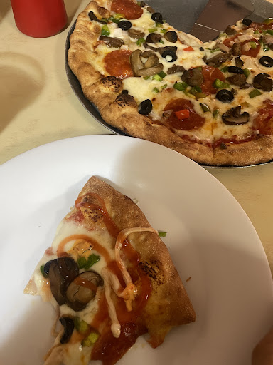 Pizza italiana gianinnos y banderillas es lo que se pidió, excelente la pizza, las banderillas con los aderezos si saben bien, recomiendo, pues si... No es barato pero tampoco caro (si lo comparamos con la competencia de cadena nacional, pues si, es un poco más barata una pizza del mismo estilo), están bien sin exagerar de que están ricas, no hay un 4.5 estrellas sino eso le ponía ... El ambiente es muy ruidoso y no siquiera es música, es la telenovela de turno 😬, eso sí, vista por Sky 😬, pero bueno... Si regresaría ., anexo la razón por la que es muy ruidoso (un equipo de extracción de cocina con mantenimiento deficiente, bandas y poleas y flecha no está ajustadas adecuadamente y/o insuficiente tacones antivibratorios o resortes antivibratorios...