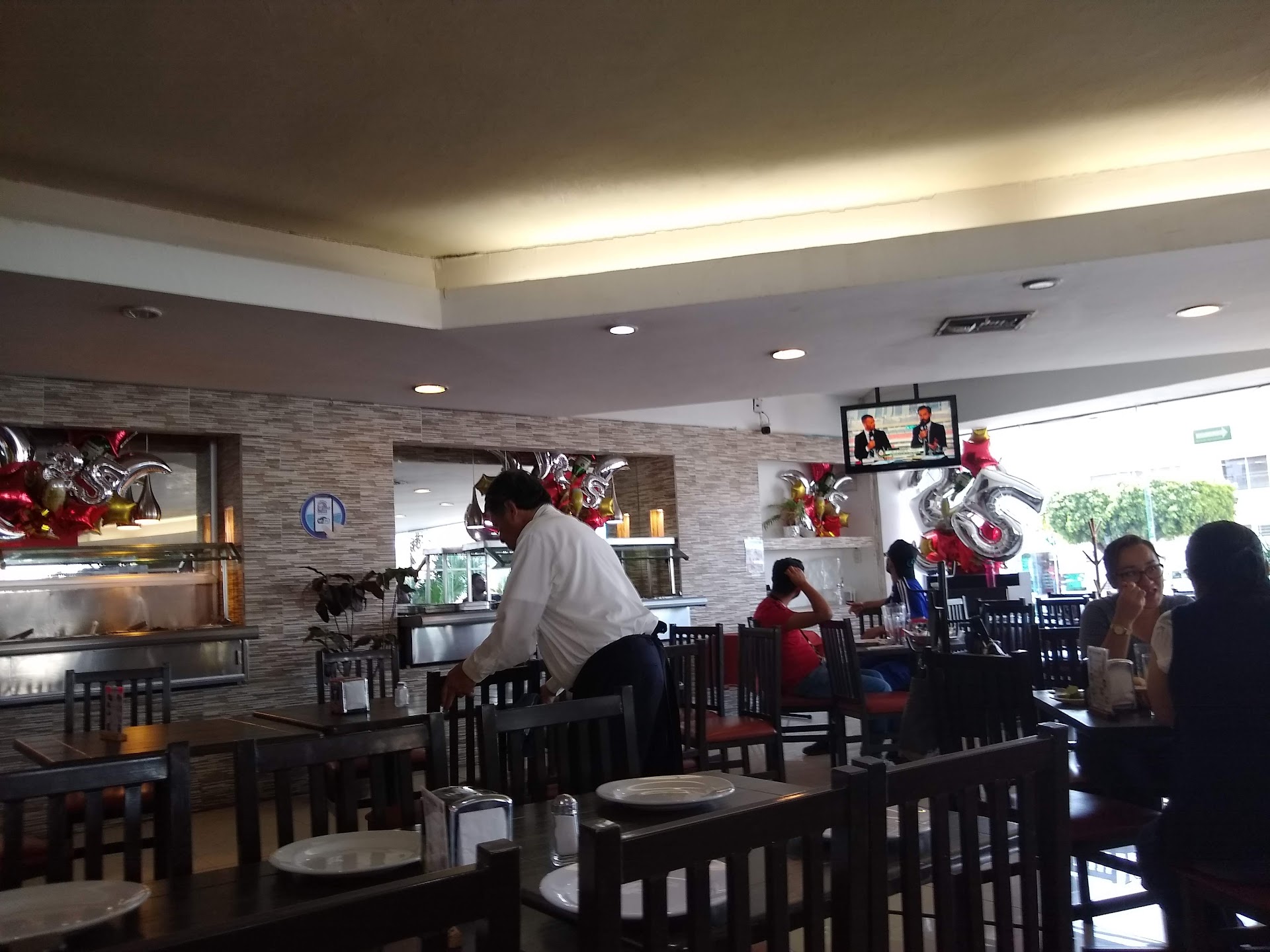 Service was attentive. It is a large place with plenty of space between tables. This is a buffet with plenty of dishes to choose from with four or five desserts to choose from. I have been here several times in as many years. You will not leave stuffed to the hilt, especially with the variety of shrimp and fish offered. Many people come to the buffet which at $200 pesos is quite reasonable. The large selection might make one overlook that the taste of each selection seems quite similar to the...