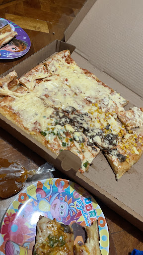 Así llego toda ladeada Le llame a la dueña para preguntarle que si así era su pizza vegetariana “señora, a usted se le antoja una pizza de queso con cebolla? Pensé que iba a llevar sobre una misma área un poco de cada vegetal, no que me mandaría 3 rebanadas de queso y un vegetal” a lo que me responde que “lleva 47 años haciendo pizzas y sus clientes ya saben que así van” le conteste “yo no soy su clienta, por eso le pedí un menú”