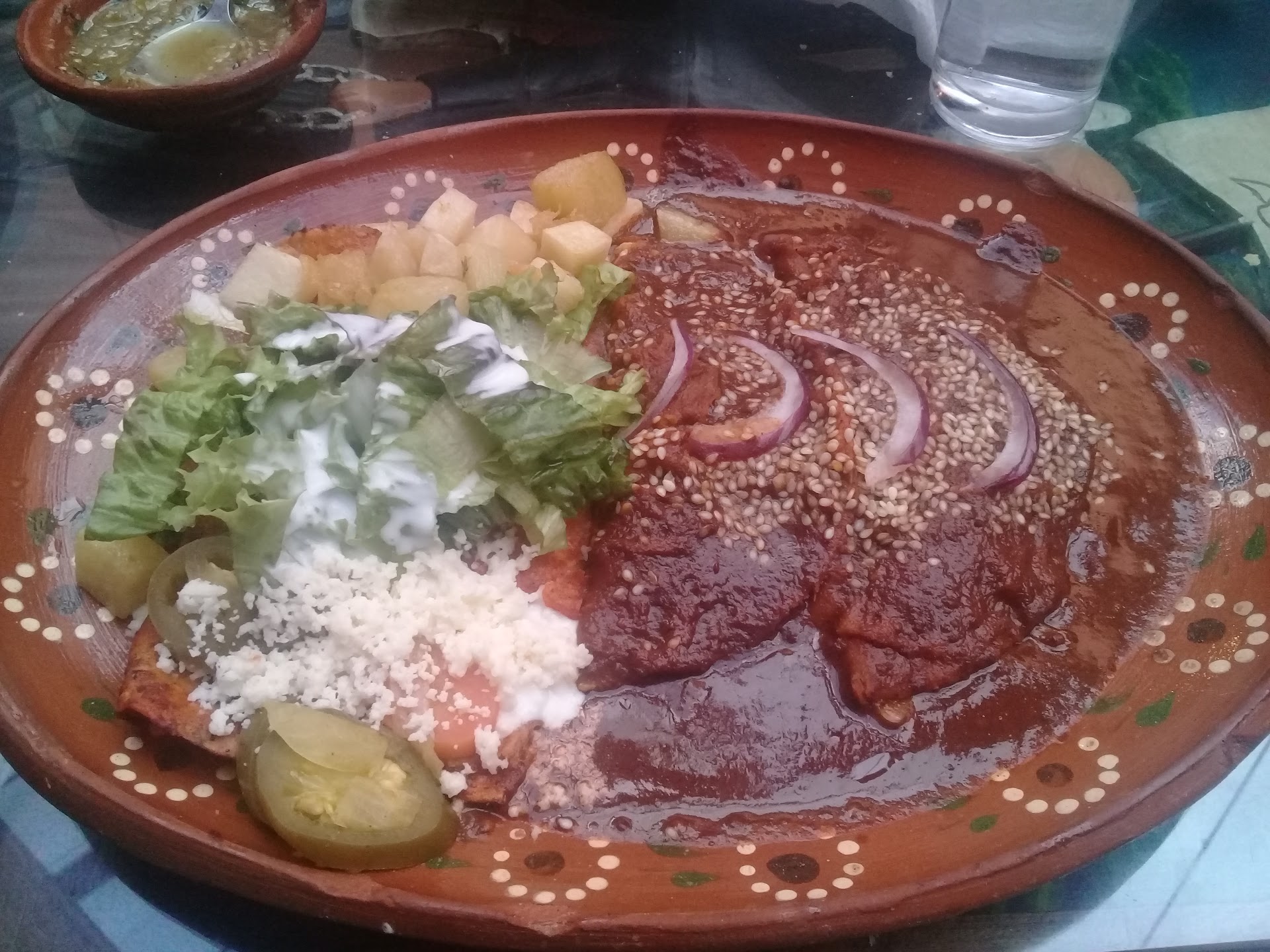 I'm going to grade this place in different aspects, the first is the location, which is great the restaurant is located in downtown and its in like a minimall, it is surrounded by a bar and some other stores that were brought by the government for tourism, where you can buy local products. They have several prizes displayed at the entrance. The tables and chairs are folkloric, and by that I mean they have different artistic or historical scenes or characters on them, carved on the wood. And they are comfortable. The food is great, it's very rewarding to the palate and the presentation is attractive. Those were the good points, I mean, I would repeat my experience there if they assure me that they have improved the following: Bad and slow service, it seems like the waiters don't really want to work there, I mean a soda took almost 15 min to arrive, and only after we reminded him about it. The food also took ages to arrive, more than expected in a normal restaurant. Plus we had to change the order one time because after all the time the waiter came back to say that they didn't have the ingredients. What they were doing all this time? Who knows! Lot of flies, you would expect flies on the street cars, but in the restaurant? What about electric zappers, or any other kind of devices to make your stay better. I left a written review noticing these points so maybe they would improve, I hope because the food is pretty good, that what save it...