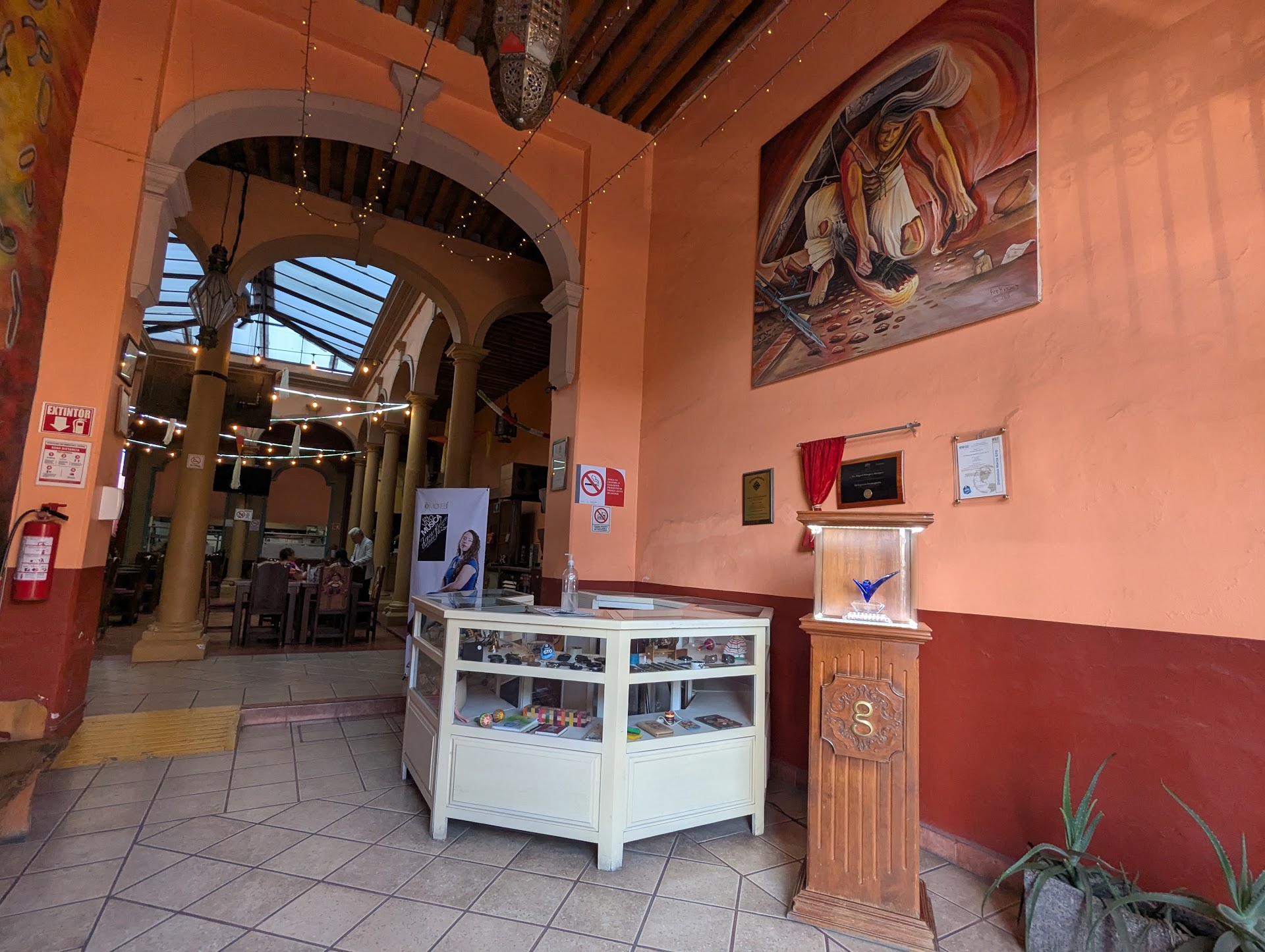 Read moreEste recinto consiste de dos áreas con diferente menú y diferente atmósfera, Mi Espacio Guanajuato, en la planta baja, y La Terraza en la planta alta. Comimos en La Terraza que ofrece una vista espectacular de la zona más emblemática de Celaya: la Catedral, el Templo de San Francisco, la Bola del Agua y la Calzada Independencia. El menú ofrece platillos muy originales, especialmente el lechón en salsa de cajeta que combina sabores locales, presentado magníficamente. Los otros platillos que degustamos fueron igualmente deliciosos. La decoración de Mi Espacio es impresionante y merece una visita especial sólo para admirar las mesas, sillas y barra de madera tallada por artesanos locales. ¡Altamente recomendado!