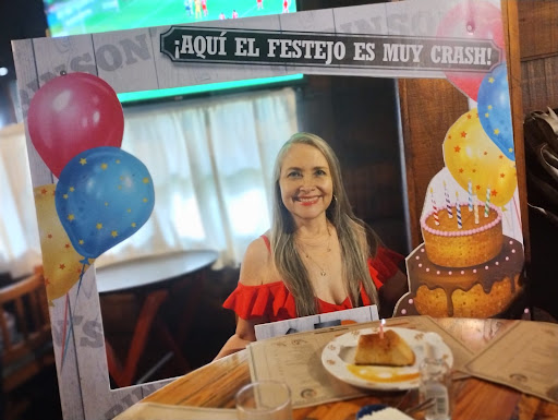 El mesero me regaló un gran flan con su velita y 4 cucharitas por mi cumpleaños, me prestaron un marco para la foto y me pusieron las mañanitas, muy a gusto que la pasamos 🍰