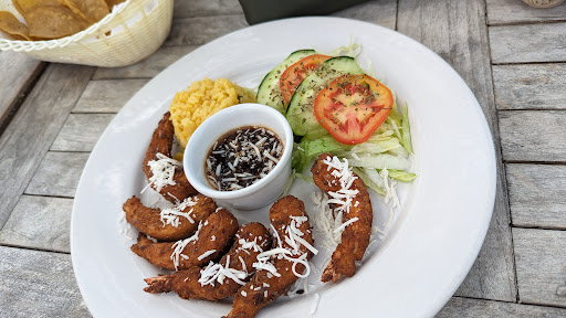 One of the few restaurants with their ow car park on the Celestun seafront; you are in a quieter, more tropical atmosphere...need a drink? Perhaps a spot of lunch (are we too early? Or too late? Don't worry....) A laid back, but attentive and welcoming service, superfresh tuna, and hot shrimp tortillas, a 2 for 1 happy hour....what else could you possibly need? Sea view, palms, inquisitive black birds? Or a walk on the white beach, to find beautiful shells?? It is all...