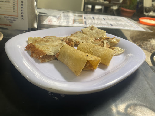 Una maravilla realmente una joya en el corazón de Córdova Comida de origen libanés de acuerdo a lo comentado por el gerente del restaurante Al pedir informes de como son los famosos y tradicionales triángulos el mesero nos brindó una degustación gratuita de triángulo y taquitos combinados que son de carne con queso el triángulo es elaborado con pan pita con la receta original de los bisabuelos del gerente ya que comenta que la receta es una herencia familiar ala cuál no se le ha cambiado ningún ingrediente ni modificado ya que para ellos lo importante es conservar el sabor original Nos comenta que originalmente era un trompo de pastor pero a su abuela le daba desconfianza que la carne al cortarla del trompo se encontraba con una cocción parcial por lo cual decide ponerlo en una olla en lugar de un trompo lo cual le da el sabor similar a una cochinita pibil.
