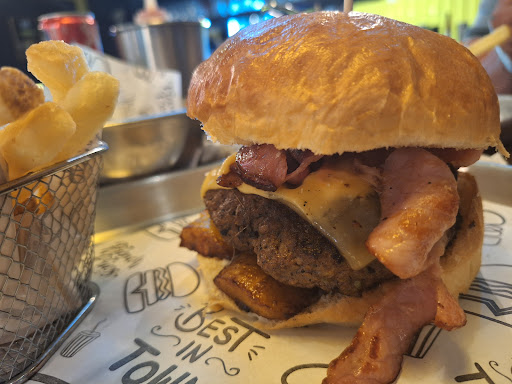 Un lugar recomendado para comer en el sitio, con amigos o gente que disfrute la comida y bebida; o para pedir platillos para llevar. Defintivamente quiero probar todas las hamburguesas y hot-dogs del menú.