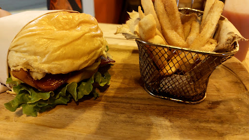 Para empezar pedimos una entrada llamada Perritos que según constaba de BONELESS Y PAPAS GAJO bañados en queso para nachos y BBQ. Vaya sorpresa que no tenía nada de BONELESS o no se si ellos consideran que los Nuggets congelados sean Boneless ya que eso eso lo que nos sirvieron . Para acabar de amolar con un sabor extraño y mariscoso. Evidentemente que no tenía una cadena de frío correcta. Al final no nos terminamos dicho plato. De hamburguesas solicitamos 2: la BARBI Y BBQ BBY Las cuales demoraron unos 45 min en ser servidas. Apesar de solo haber 2 mesas (contándonos) El pan demasiado dulce y un Exceso de aderezos que hacían demasiado dulces. Aros de cebolla aguados. La BBQ BBY de nueva cuenta nos la sirvieron con Nuggets congelados.(Adjunto foto) Y es donde dices .... Para hacerme una torta de Nugget mejor los hubiera hecho en casa. Lo único rescatable el sabor de la Carne de hamburguesa. Pero es una lástima la ejecución de todos los elementos que la conforman.