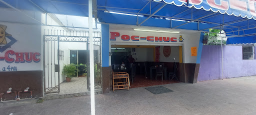 El Poc Chuc es un emblemático platillo yucateco, es principalmente carne de puerco frita, marinada con naranja agria con un trozo de chicharrón de puerco. Aunque tambien venden otros platillos típicos de taquerias.