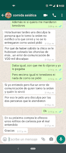 Es una pena que teniendo buena comida y buenos paquetes, NO tengan buen servicio al cliente, las empleadas te tratan como si te hicieran el favor de atenderte, casi siempre pido a domicilio pero SIEMPRE me llega la comida toda revuelta, a veces sin tenedores ni salsa. Además de lo tardado para las entregas. Mala experiencia una tras otra. Además de que te ofrecen las cortesías para que al final ni te las quieran dar por las empleadas y para rematar con su mala cara y...