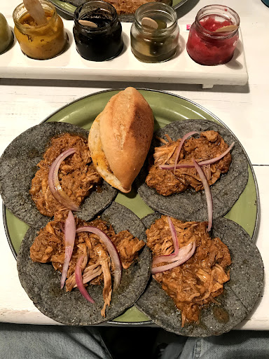 Read moreThis place is da bomb dot com. I highly recommend the gordita and the taco. The gordita is small, but it's on a very fresh, warm, thick, two-tone corn tortilla, with cream, queso, and pickled red onions. The taco is on a thin, black corn tortilla, and also has pickled red onions. The cochinita pibil is to die for. It's juicy and drippy and you'll end up sucking the juice off of your fingers. She will serve the food with a flight of habanero salsas of varying degrees of spicy. Cash only and no wifi but you'll be so busy eating you won't notice that you don't have...