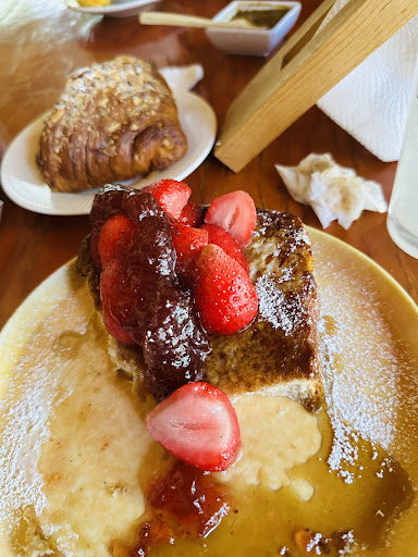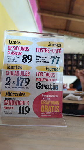 El lugar es muy bello, la tranquilidad y lo fresco que está el área de mesas rodeado de muchas plantas y árboles que le dan ese toque de frescura y una bonita vista, lo que no me pareció del servicio es que te cobran el café, todos los restaurantes te dan el café si pides un desayuno o cena, está incluido y pues aqui llegando,llegando te sampan la taza de café creyendo que será parte de tu desayuno, los desayuno son algo elevados en cuanto al precio, nada que no se pueda pagar Pero, si algo elevados, sobre todo porque si pides chilaquiles con pollo o cualquier otro ingrediente, esperas a que lleve suficiente, sin embargo están muy paupérrimos de pollo, en cuanto al sabor, estan buenos, traten de pedir una salsa que no pique mucho, ya que si picsn un buen y eso le da mucho sabor, al final el cafe te lo cobran en $30 y si quieres refill $15 mas. Esos detalles creo deberían mejorarse...sin embargo la atención es muy buena, el lugar es tranquilo, no està súper lleno, considero que para una plática amena es una...