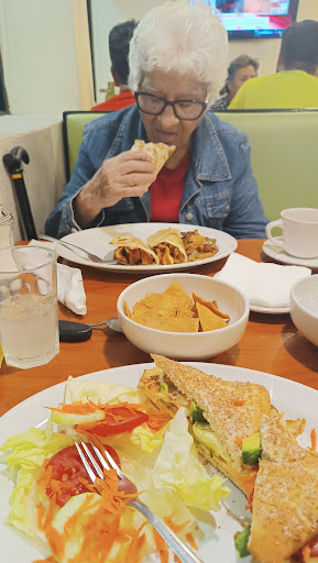 Comida: Poca variedad. Queríamos una cecina y la mesera nos dijo que pidieramos otra cosa porque estaba saliendo mal. Pedimos molletes y huevo con chorizo, ambos muy simples sin sabor. El café americano sin sabor. No nos ofrecieron complementos como tortillas, pan, totopos ni salsa.