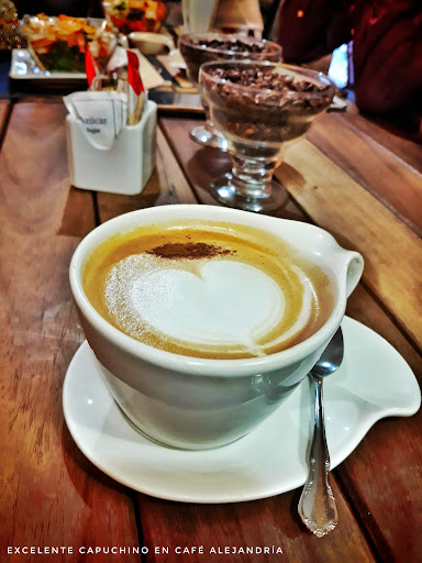 Read moreUn lugar muy agradable para degustar un buen café y sus variedades. Esta vez probamos los frapes de: cajeta muy rico super recomendable; Alejandría, pues muy rico aunque en el menú no lo menciona contiene menta; tradicional, muy delicioso aunque demasiado dulce. Pedimos una rebanada de chocoflan aunque el pastel de chocolate estuvo delicioso la parte del flan tenía una consistencia dura, más parecida a un pudin. Y el pay de limón estuvo demasiado seco. Pueden mejorar, aún hay mucho...