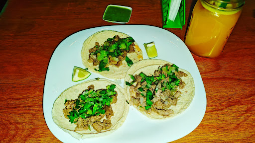 En cuanto a la comida, pedí un paquete de 3 tacos (bistec) y un agua del día (mango). El agua me gustó bastante y los tacos están buenos.