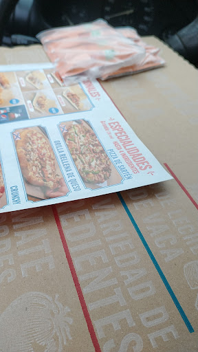 Read moreDescepcionado cuando me dieron otra cosa que no pedí, mitad peperoni y mitad extravaganzza con orilla rellena de queso, canelazos y papotas... Ya que llegué a mi casa me percaté que me dieron otra cosa; una pizza sin orilla, de peperoni y mitad quesos, me dieron canelazo bites, y las papotas, eran miniatura, no del tamaño que acostumbran brindar. Nos la tuvimos que comer para no perder más tiempo, teníamos hambre. Yo que soy fan de ustedes, me llevé una descepción, sobre todo porque no fué nada barato y no recibí...