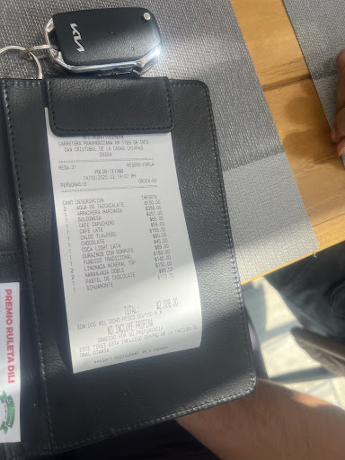 Read more-Comida 9 (muy buena) está muy rico todo, tiene un buen sazón. Desde lo que está en la carta hasta en el buffet de botanas tiene un buen sazón. -Precio 8 (adecuada) está carito, no es un lugar en donde vayas a comer y esté económico todo. Pero si vas por la buen comida está muy bien. -Lugar 9 (muy buena) está muy lindo el lugar, acojedor. En el restaurante hay muchas ventanas y está como en una colina por lo que se puede observar desde ahí el paisaje muy bonito. También en el jardín cuenta con una resbaladilla grandesita para los niños y está muy lindo. -Ambiente 9 (muy buena) ponen música y se ve que de vez en cuando hay música en vivo. Cuando llegamos llegó un muchacho con un saxofón y tocó en vivo. Cabe destacar de esto que las canciones fueron agradables, el problema es que el muchacho no tocaba muy bien. -Atención 8 (buena) hay meseros que te tratan muy bien :b y muy agradable. Lamentablemente a nosotros nos tocó una muchacha que no era muy amable.