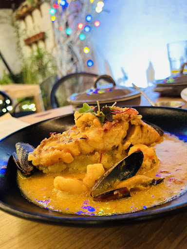 Read moreLa comida muy buena pedimos la única ensalada que tienen en el menú Pero estaba deliciosa, también se pidió un tinto de verano, copa de vino🤤 y new york que venía acompañado de verduras asadas (al grill) y un puré casero super bueno. Fue fin de semana así que hay música en vivo como de trova, boleros etc. Pero nos tocó noche de Joaquín Sabina y estuvo excelente pues los cantantes son muy amables también y buenos en la música. En realidad vale mucho la pena. Los comentarios son buenos para las paellas pero no las probé así que será para la próxima. No es tan costoso para y...