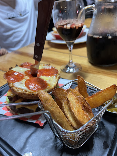 Read moreFuimos mi pareja y yo a comer al restaurante, aparentemente lo encontramos decente aunque algo caro pero prometían una hamburguesa de carne Angus de calidad. Las otras reseñas no eran tan negativas y nos decidimos a probar. Ordenamos una hamburguesa clásica con patatas por 180 pesos mx y una bbq también con papas por 220 pesos mx. La carne la comparo a la del burger King y siendo amables, la hamburguesa era fina como un salvaeslip, a la cual habían roto la cadena del frío mil veces y para rematar nos la sirven quemada por los bordes. Tampoco nos consolaron las 4 patatas que acompañan el desastre de lujo. No nos pudimos comer ni la mitad, aunque le dimos chance. Le comentamos al camarero la situación, en un principio estuvo de acuerdo con nosotros, se lo trasladó al dueño pero finalmente ninguno se hizo responsable pagamos nuestra cuenta íntegra y no se ofrecieron ni en ajustarla. Denota lo poco que les importa estafar a clientes ofreciendo productos de pésima calidad a precio de...