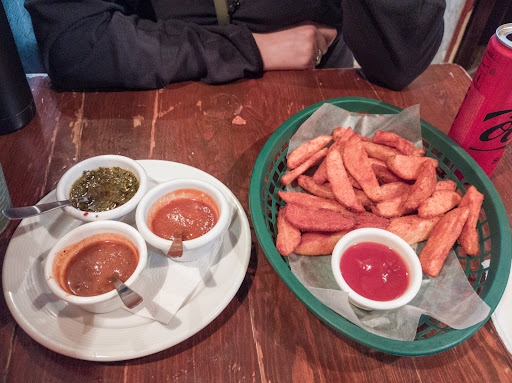 We ordered veggie calzone, full of mixed veg and cheese that was very reminiscent of an empanada; some creamy and comforting spinach ravioli; and a side of 'spiced french fries', which were actually more like wedges. All of it was outstanding. For s homesick Brit craving fried potato but wanting to avoid chains, these were a welcome find!