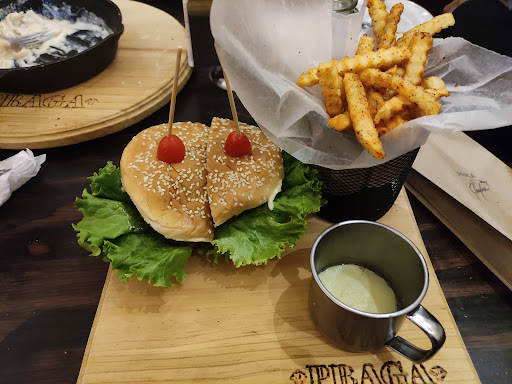 Respecto al sabor... Nada extraordinario. No es feo, pero por lo que pagas esperarías algo mucho mejor. Las porciones en algunos platillos son cuestionables. El platón praga (creo que así se llama) literal solo es para degustar, que tiene poquísimo de todo y está bastante elevado de precio. La hamburguesa está decente, pero no es una maravilla; las papas que la acompañan están rarísimas (sumándole que me lo pasaron frío). Las pastas están algo insípidas, pero la porción es suficiente como para una persona.