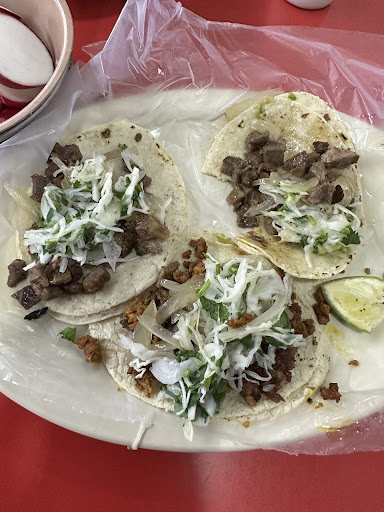 Read moreLos tacos son muy buenos acordes al precio que tienen. Me gustaría resaltar que los tacos de tripa son los mejores de todas las opciones de carnes/etc. Por otro lado también los acompañamientos como la salsa (es muy picante [10/10]), el repollo curtido (10/10), rábanos y cebolla cocida, pff. En serio que es una taquería muy bien dada acordé al sabor y precio. Muy...
